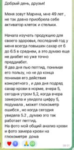 Марина, 49 лет, несколько лет боролась с повышенным сахаром в крови (от 6 до 6.5). Она знала, что это уже «преддиабет», но всё равно не принимала лекарства. Она решила попробовать пептиды. Уже на второй день уровень сахара снизился до нормальных показателей — 5 и 5.2. Это реальное доказательство, что пептиды могут работать, улучшая состояние здоровья и поддерживая нормальные показатели в организме.